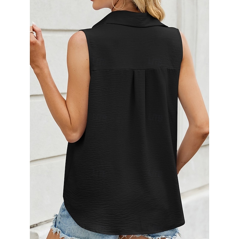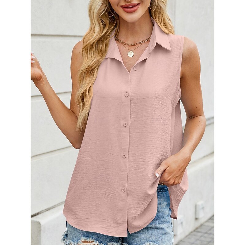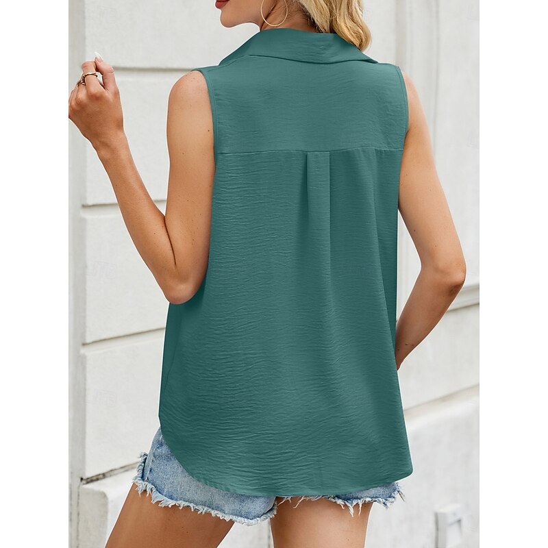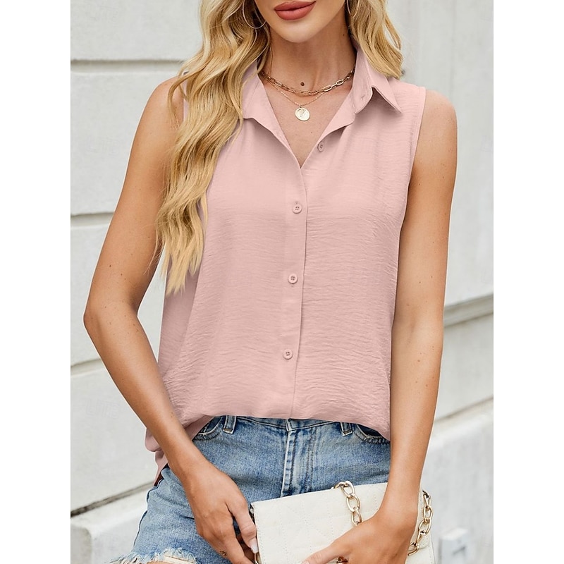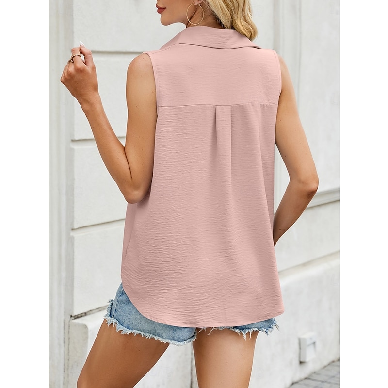 More information about Women's Camisole Tank Top Solid Color Basic Casual Sleeveless Shirt Collar Regular Tops Daily Buttons Black White Pink Army Green Sky Blue Summer