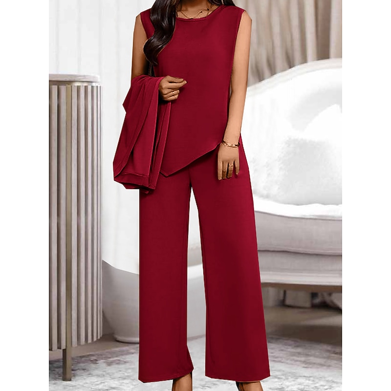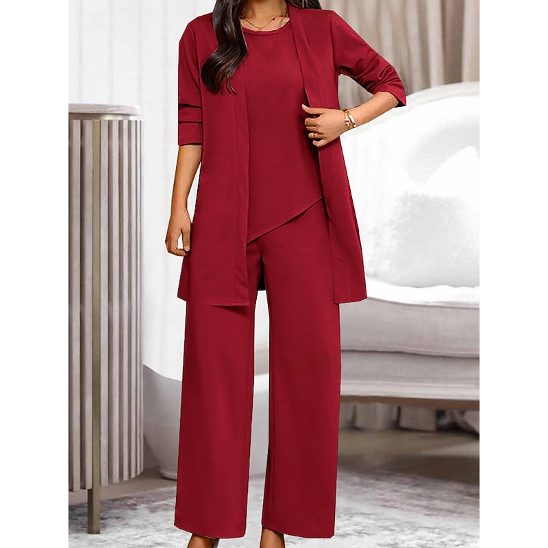 Women's Loungewear Sets 3 Pieces Pure Color Fashion Casual Comfort Street Daily Date Breathable Crew Neck Long Sleeve Pant Pocket Summer Spring