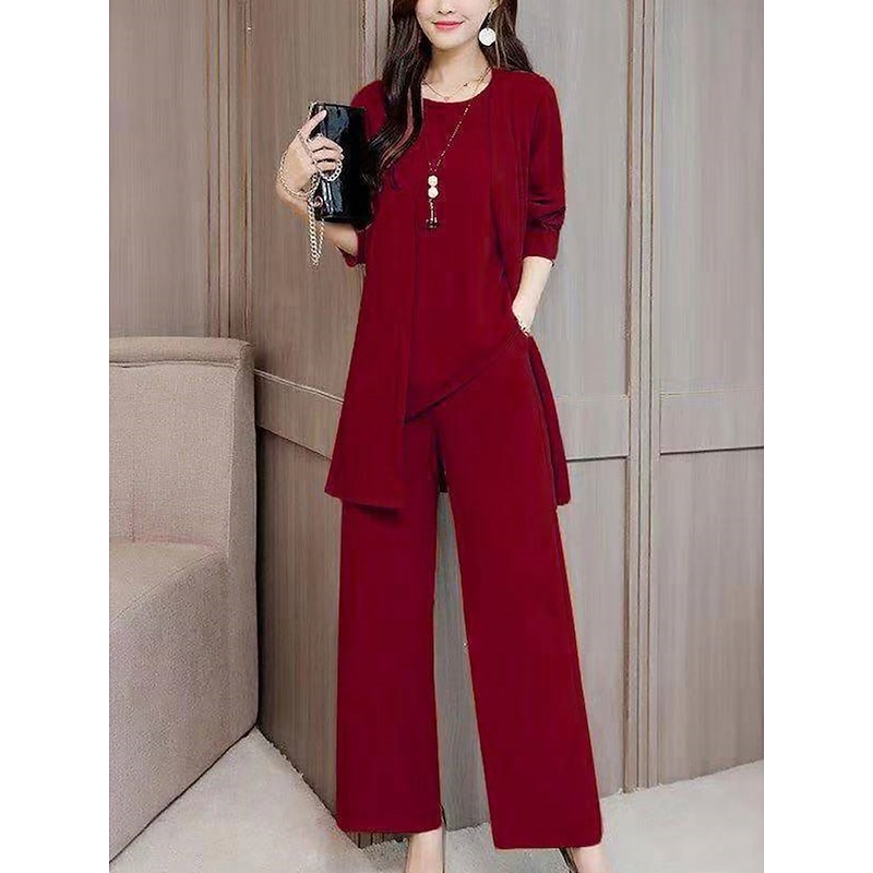 Highlights [Fabric]: This women's loungewear set is crafted from high-quality polyester, ensuring breathability and comfort for all-day wear. The fabric's micro-elasticity allows for ease of movement, making it ideal for daily activities. The set's pure color theme enhances its versatility and style, offering a modern yet sophisticated look. [Silhouette]: Featuring a modern, relaxed fit, this ensemble includes a long open-front cardigan and wide-leg pants. The high-waist design of the trousers complements the silhouette, adding an element of elegance to the overall look. This set beautifully combines comfort with a chic, tailored appearance. [Design Highlights]: The cardigan's long sleeves and the pants' pockets are both functional and stylish, catering to the needs of the contemporary woman. The ensemble is finished with a classic crew neck design, providing a simple yet sophisticated touch to the set. [Occasions]: Perfect for a variety of settings, from casual streetwear to more formal occasions. Whether you're going out for a date, running daily errands, or attending a casual event, this loungewear set effortlessly transitions between different situations. [Size Range]: Available in sizes M, L, XL, 2XL, 3XL, and 4XL, this set caters to a wide range of body types, ensuring a comfortable fit for all. Perfect for everyday use. premium materials and excellent craftsmanship ensure long-lasting durability.