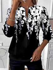 sizzling ! Women's Pullover Sweatshirt Zip Up Sweatshirts Floral Graphic Fashion Casual Long Sleeve Crew Neck Round Neck Regular Tops Street Dailywear Patchwork Zipper Print Black Spring Fall Winter