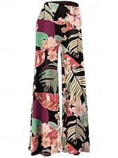 More information about Women's Culottes Wide Leg Chinos Streetwear Casual Full Length Medium Waist Floral Elastic Waist Printing Comfy Stretchy Vacation Street Daily Dark Gray White Dark navy Khaki Fall Winter Regular Fit