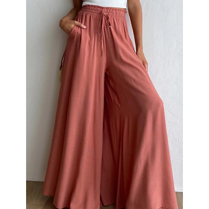 Why Choose Women's Wide Leg Chinos Baggy Pants Basic Casual Full Length High Waist Plain Pocket Elastic Waistband Comfy smooth plush Micro-elastic Outdoor Street Blue Orange Green Khaki Summer Spring?