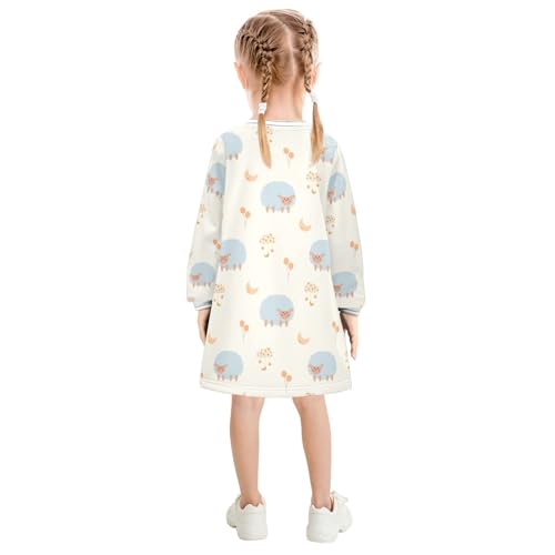 Light Blue Sheep Girls Dresses Long Sleeve Sweatshirt Dress for Girls Winter Toddler Casual A Line Dresses Size 2-8T