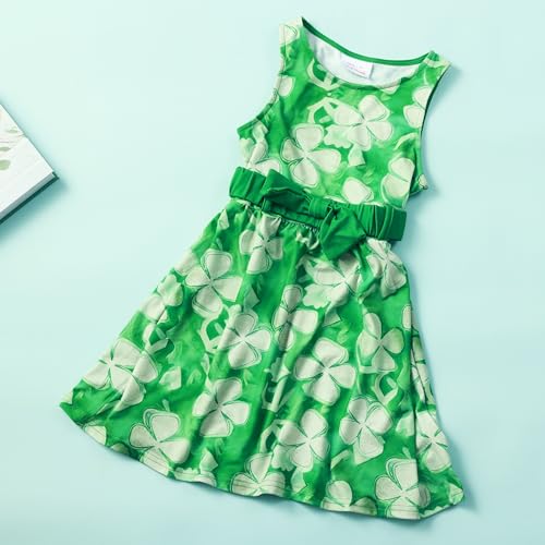 HH Family Girls St Patricks Day Oufit Clover Green Dress for Kids 4-12 Years