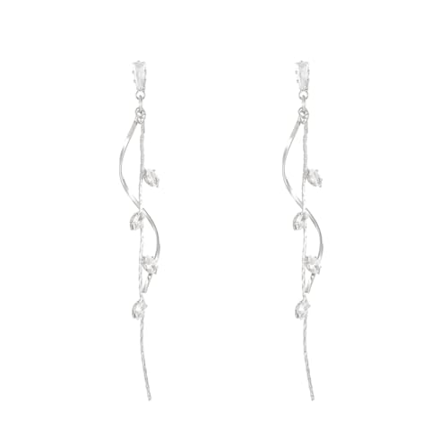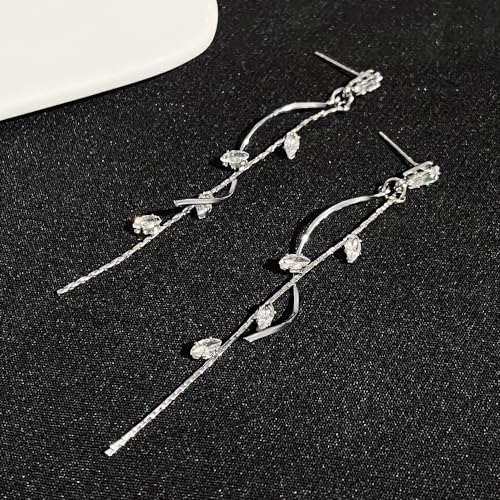 Long Crystal Linear Drop Earrings for Women Zirconia Threader Tassel Earrings Twist Leaf Rhinestone Dangle Earrings Dainty Wedding Prom Party Jewelry Gifts