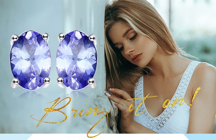 More information about JewelryPalace Oval Cut 1ct Natural Blue Tanzanite Solitaire Stud Earrings for Women, 925 Sterling Silver 14k White Yellow Rose Gold Plated Earrings for Her, Fashion Gemstone Jewelry Gift for Girls