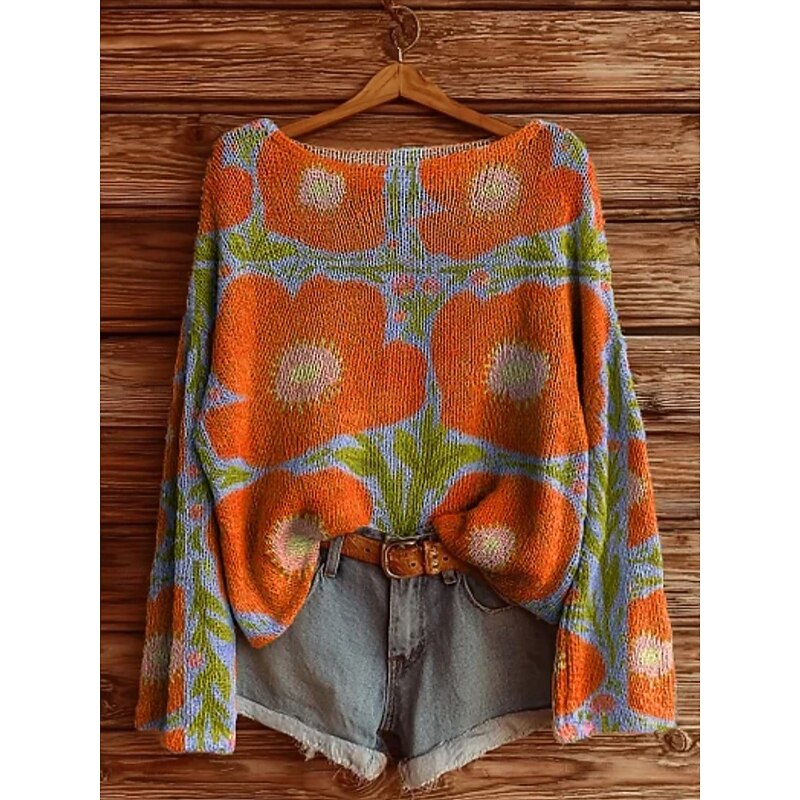 This Women's Sweater Casual Soft Geometric Color Block modern Modern Long Sleeve Crew Neck Regular Tops Daily Holiday Print Blue Orange Green Khaki Gray Spring Fall Winter combines elegant design with practical functionality. Every detail has been carefully considered to ensure you get the best possible experience. The finest construction means this product will serve you well for years to come.