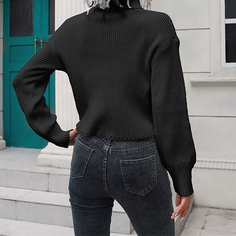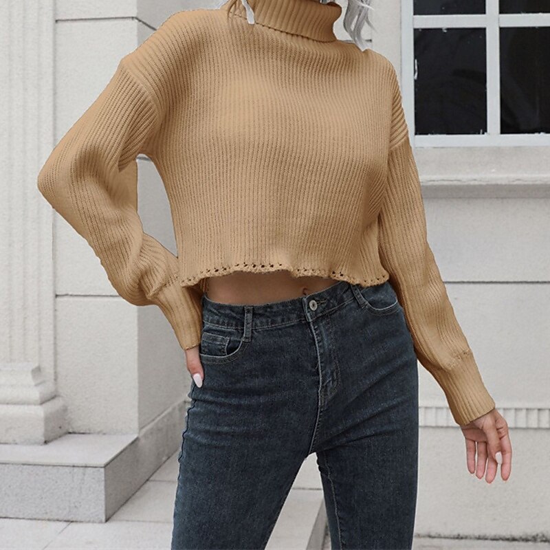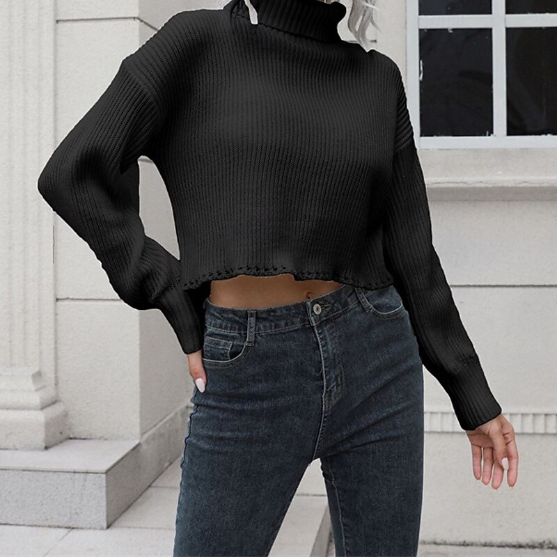Why Choose Women's Pullover Casual Solid Color Chunky Turtleneck Knitted Long Sleeve Crop Tops Knit Daily Holiday Going out Black White Fall Winter?