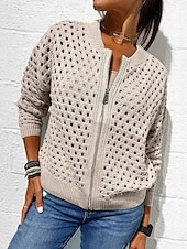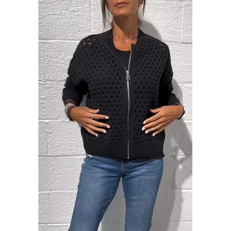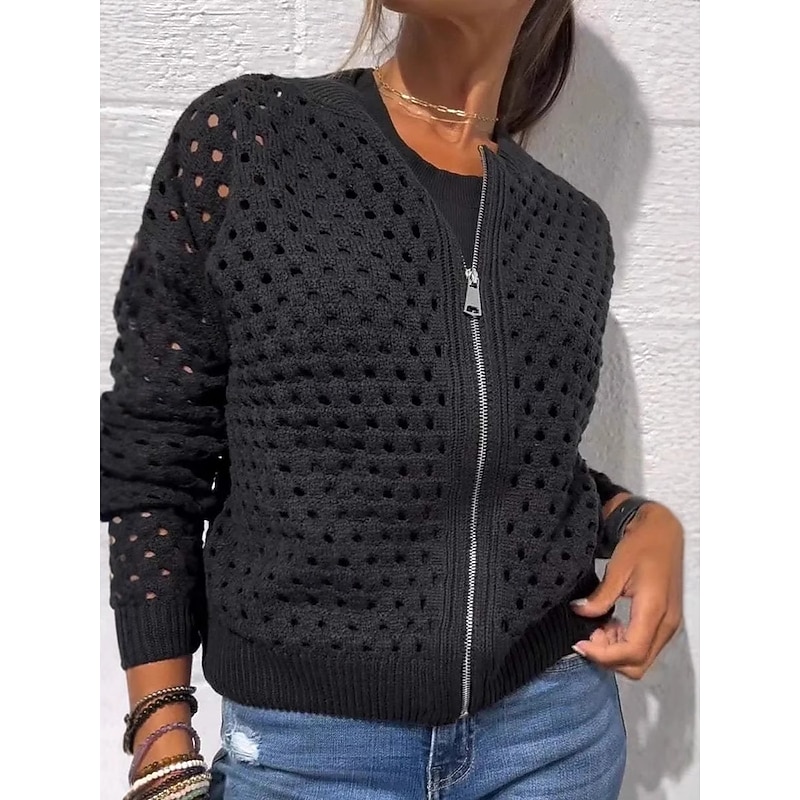 This Women's Sweater Cardigan Elegant Fashion Streetwear Solid Color Crew Neck Hollow Out Zipper Knitted Long Sleeve Regular Tops Knit Outdoor Daily Weekend Black Pink Spring Fall combines elegant design with practical functionality. Every detail has been carefully considered to ensure you get the top possible experience. The premium construction means this product will serve you well for years to come.