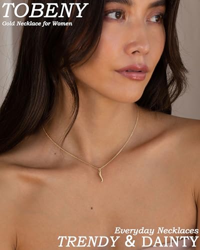 TOBENY Gold Necklace for Women Trendy 14K Gold Plated Dainty Bow Heart Cross Pendant Necklaces Cute plain Pearl Diamond Paperclip Butterfly Italian Horn Choker Necklaces for Women Gift Jewelry