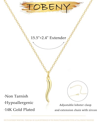 Material: GoldMetal type: BrassChain type: RoloGem type: Cubic ZirconiaItem type name: Pendant NecklacesDESIGN: Variety fashionable styles of gold necklace has a exclusive design and classy style combined with the last fashion trend such as heart, cross, pearl, bow, diamond, paperclip, butterfly, italian horncan, can be paired with any look. It will make you more attractive and impressiveSIZE: Italian horn necklace for women length 15.5+2.4 extension. Designed with a lobster clasp for easy wearing. Provides higher security and can be opened and closed more easilyMATERIAL: This gold necklace for women non tarnish was made of 14k gold-plated material. No stimulation to the skin, not allergies, hypoallergenic, lead-free, nickel free and cadmium free. The safe product gives you a better wearing experience. Suitable for any occasion and all day wearBEST GIFTS: The dainty necklace for women with a delicate gift box also can be the best gifts for your mother, sister, loved one, wife, daughter on Christmas day, birthday party, Anniversary, Thanksgiving Day, Valentine's Day, weddings, engagements and so onTOBENY AFTER SALES SERVICE: If you have any questions about our gold jewelry for women, please donβt hesitate to contact us and we will reply you with a solution your within 24 hours. Wish you a nice day Perfect for everyday use. excellent materials and excellent craftsmanship ensure long-lasting durability.