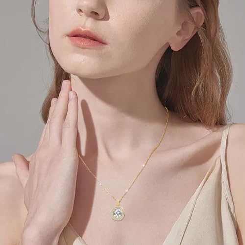 Material: MoissaniteMetal type: 18k white gold vermeil sterling silverClasp type: LobsterChain type: CableGem type: MoissaniteItem type name: Pendant NecklacesSolid Sterling Silver Chain: The whole necklace is made of sterling silver with 18K gold vermeil and is stamped with S925. It is 100% nickel-free, cadmium-free, lead-free, and skin-friendly.Ethical Alternative to Real Diamonds: We only use lab-grown moissanite of outstanding - D Color with VVS1 clarity, which means it is completely clear to the eye and offers a sparkle that doesn't dull over time. This gem provides a more realistic appearance and durability than Cubic Zirconia.Versatile from Daily to Event: A classic round-cut stone in a double halo style makes this necklace pair easily with your favorite cocktail dress or casual jeans. The 18 chain plus a 2-inch extender also ensures you have flexibility for more styles.How to Care for Your Moissanite Jewelry: Store in a cool, dry place and limit exposure to extreme temperatures and household cleaning products. Clean with a soft cloth and warm, soapy water or a fine jewelry cleaner.Any questions about color/size choices or quality, please email us without hesitation, and we will respond within 24 hours. We support a no-risk replacement or return within 60 days if you find the product unsuitable. Perfect for everyday use. premium materials and excellent craftsmanship ensure long-lasting durability.