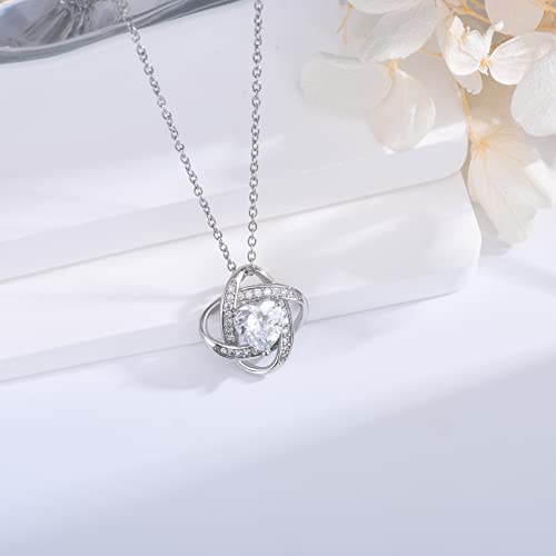EPIRORA Sterling Silver Cubic Zirconia cherish Knot Pendant Necklace for Women, Graduation Birthday Christmas Jewelry Gifts for Friends/Wife/Sister/Daughter/Mom