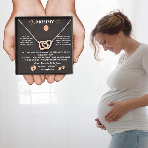 LOTUS-A Pregnancy Gifts for First Time Moms - Sterling Silver S925 Interlock Heart Pendant Necklace with Message Card Mother To Be in a moment Present for Expecting Pregnant Women
