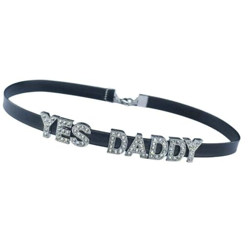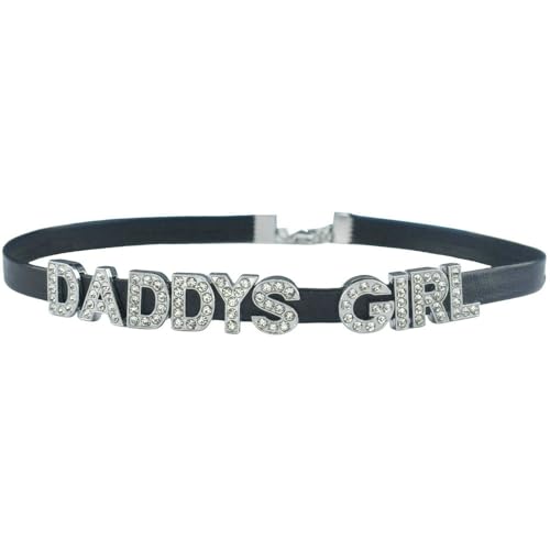 Item display length: 17 inchesItem width: 0.32 inchesMaterial: Faux LeatherMetal type: Stainless SteelClasp type: BuckleDADDY'S chokers show sexy and charming.All letters are slideable,and you can adjust any letters's position.Itβs an awesome role play collar,and your lover will love it. Add some spice ,some delight to your evening with your special someone, it will be very cool and sexy .All letters are slideable,and you can adjust any letters's position and distance.The choker's width is 0.3 inches/8mm,and the word letters height is 0.5inches/12mm.The PU leather length is 13 inches/33 cm + chain length 4 inch/10 cm,so the total choker length is 17 inch/43 cm.The Letters are made in rhinestone aolly,and it looks very twinkling.The necklace is with stainless steel buckle closure,and it's easy to adjust the length to wear and more durableThe PU leather is very soft,and it is fit for your skin .When you put it on,you will feel plush. Perfect for everyday use. excellent materials and excellent craftsmanship ensure long-lasting durability.