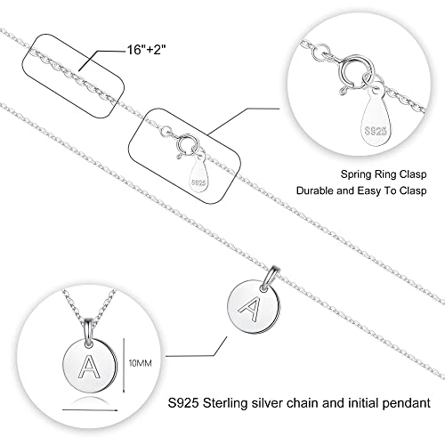 S925 Sterling Silver Disc Initial Necklaces for Women, Hypoallergenic Round Disc Initial Pendant Letter Initial Pendant S925 Sterling Silver Initial Necklace for Women Jewelry Gifts