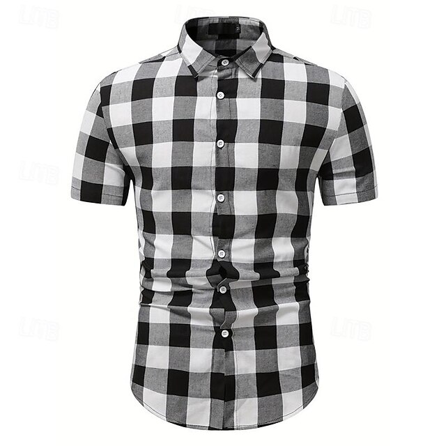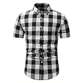 More information about Men's Shirt Dress Shirt Button Up Shirt Plaid Wedding Party White Short Sleeve Lapel Summer Clothing Apparel