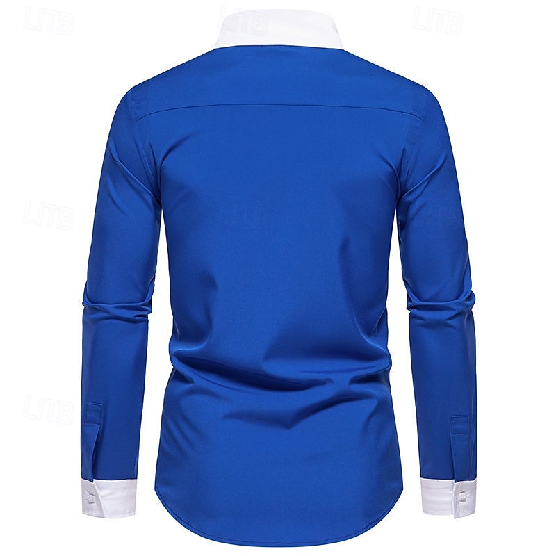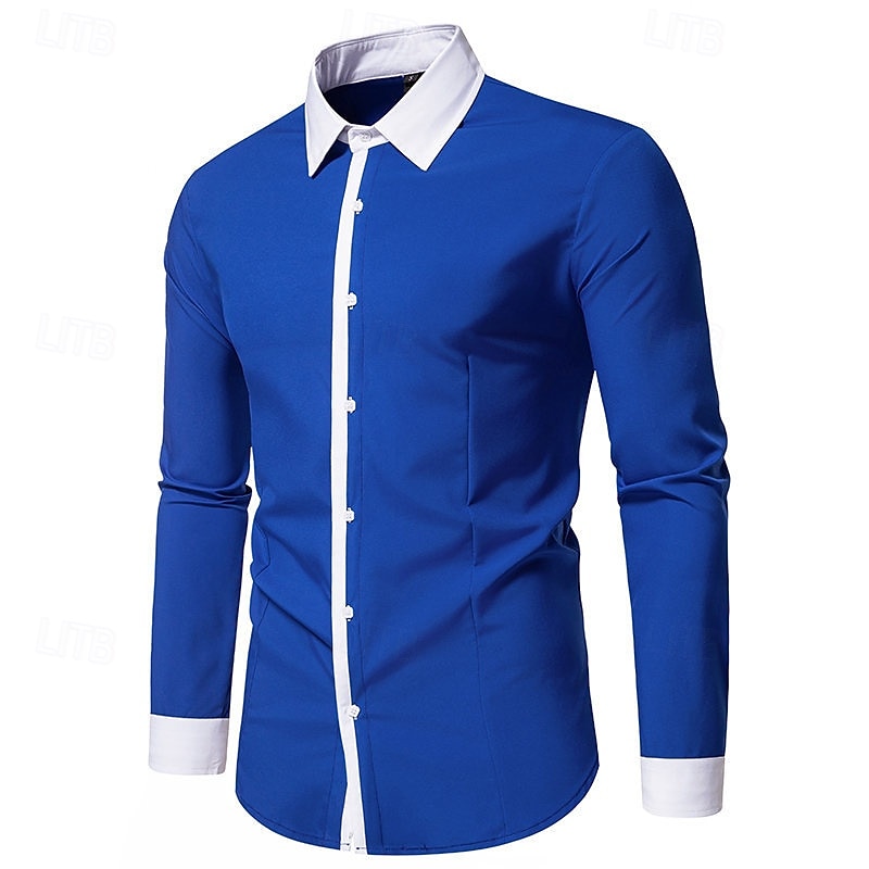 Why Choose Men's Shirt Dress Shirt Button Up Shirt Color Block Wedding Party Black White Navy Blue Blue Long Sleeve Lapel Spring & Fall Clothing Apparel?