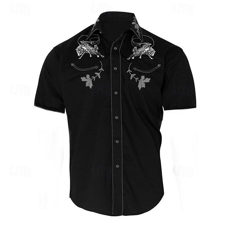 More information about Men's Floral Graphic Prints Shirt Western Shirt Cowboy Shirt Short Sleeve Fashion Streetwear Designer Outdoor Street Daily Summer Spring Turndown Print Black Yellow Blue Purple Gray