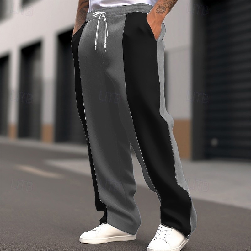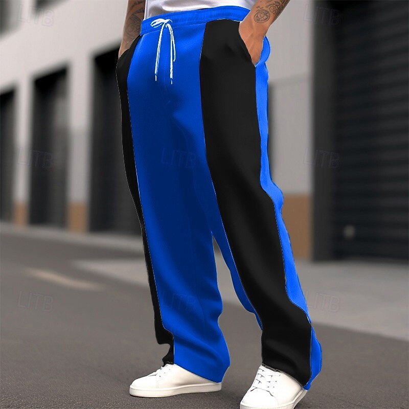 Highlights [Fabric:] Crafted from high-quality polyester, these Men's Wide Leg Sweatpants offer a micro-elasticity for optimal comfort and flexibility. This ensures ease of movement, making them ideal for a variety of activities. [Fit:] These sweatpants feature a regular fit with a mid-waist design, providing a relaxed and cushy feel suitable for everyday wear. [Design Highlights:] The pants boast a striking two-tone color block pattern in black, dark blue, and gray. The patchwork detail and adjustable drawstring waistband add a touch of contemporary style, while the convenient side pockets enhance functionality for carrying essentials. [Occasions:] Perfectly suited for sports, outdoor activities, and daily casual wear, these sweatpants combine fashion and function effortlessly. Whether you're heading out for a leisurely walk or dressing down for a casual weekend, these pants are versatile enough to adapt to any laid-back occasion. [Size Range:] Available in sizes S, M, L, XL, 2XL, and 3XL, ensuring a comfortable fit for a broad range of body types. Perfect for everyday use. premium materials and excellent craftsmanship ensure long-lasting durability.