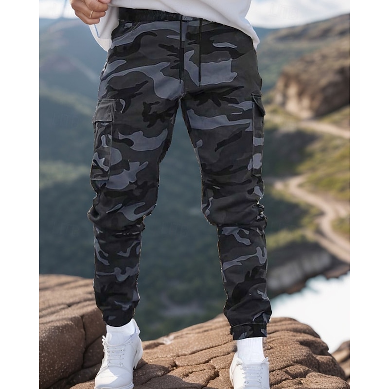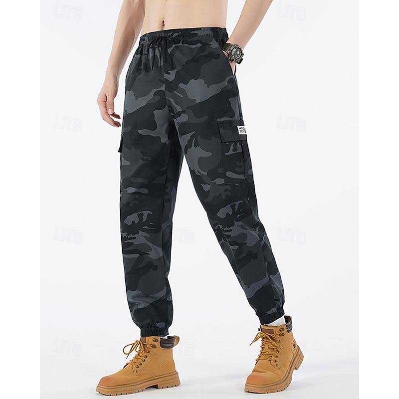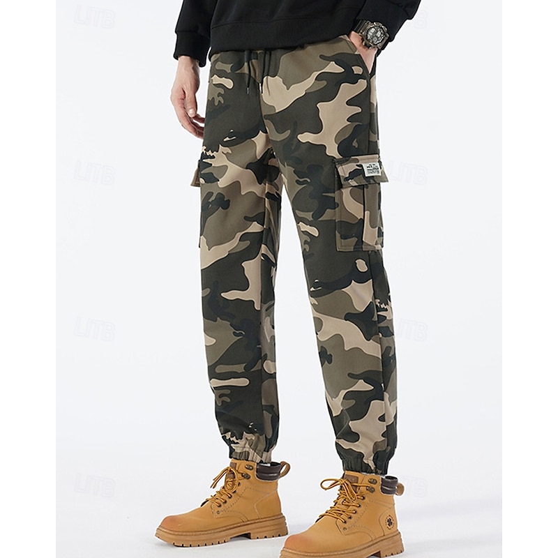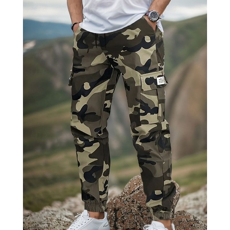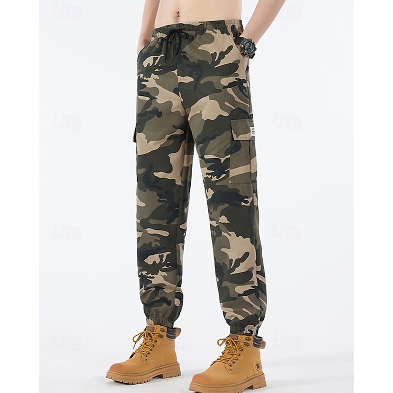sizzling ! Men's Cargo Pants Trousers Camo Pants Drawstring Elastic Waist Multi Pocket Camo Wearable Outdoor Daily Camping & Hiking Fashion enduring Black Army Green