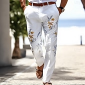 Why Choose Men's Floral Print Flowers Dress Pants Trousers Suit Pants Mid Waist Casual Outdoor Vacation Regular Fit Flat-Front Straight Leg Pants with Pockets Summer Spring Fall 3D Print White Blue Purple?