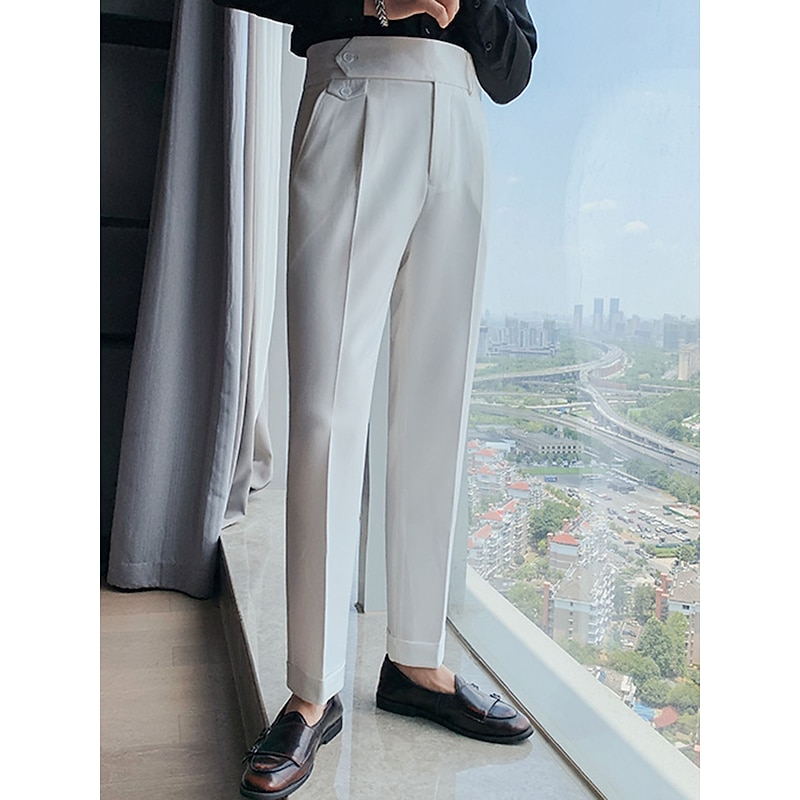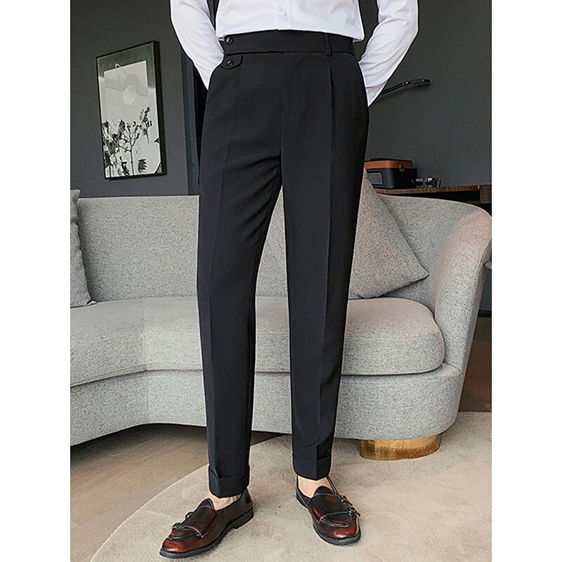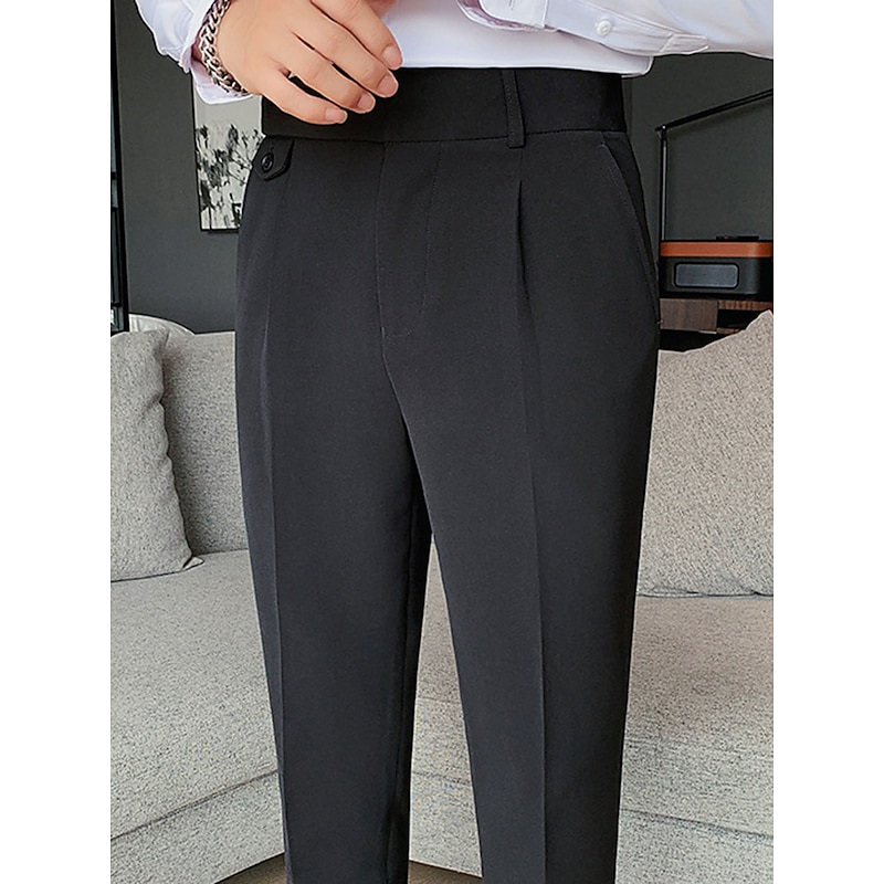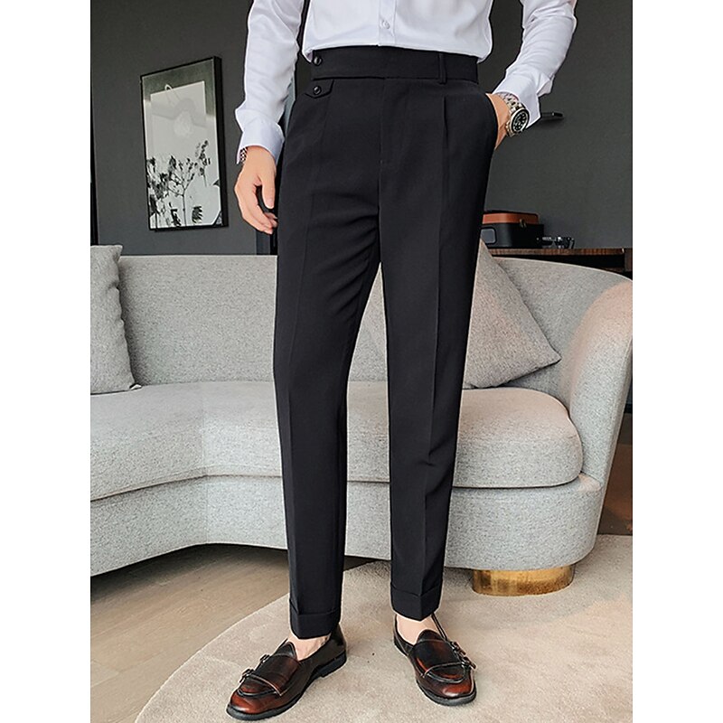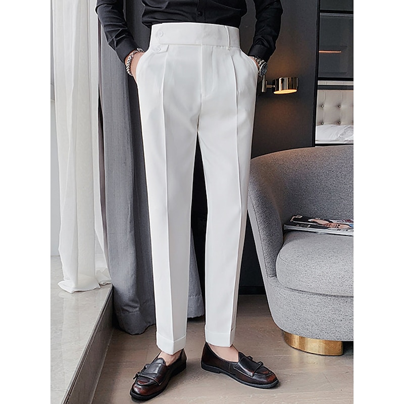 sizzling ! Men's Dress Pants Trousers Slacks Pleated Pants Suit Pants High Rise Plain Comfort Breathable Wedding Outdoor Daily Elegant Vintage Black White