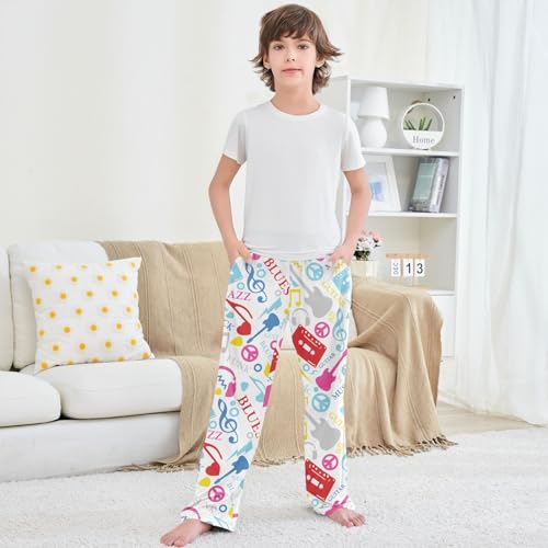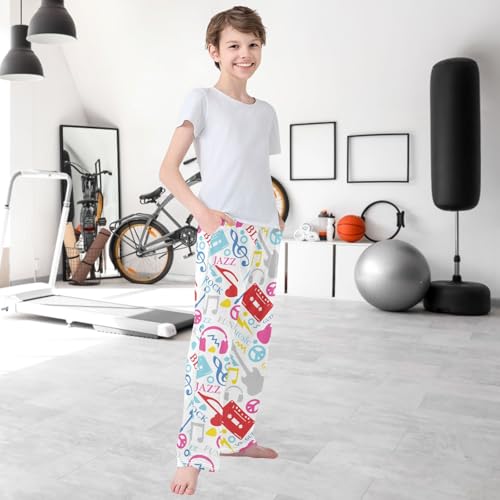 sizzling ! Boy's Pants White Pink Gray Music Pattern Jogger Pants Elastic Waist Long Bottoms Trousers with Pockets 6-14 Years
