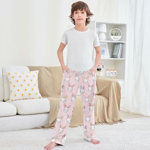 sizzling ! Boy's Pj Pants Cartoon Rabbit Face White Heart Lounge Bottoms Elastic Waist Kids Joggers with Pockets Size 6-14