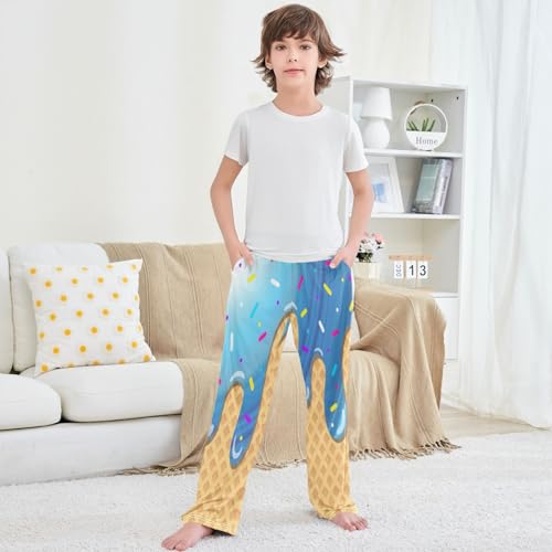 Boys' Jogger Pants Blue Ice Cream White Circle Kids Joggers Bottoms Trousers Sweatpants with Pockets Size 6-14