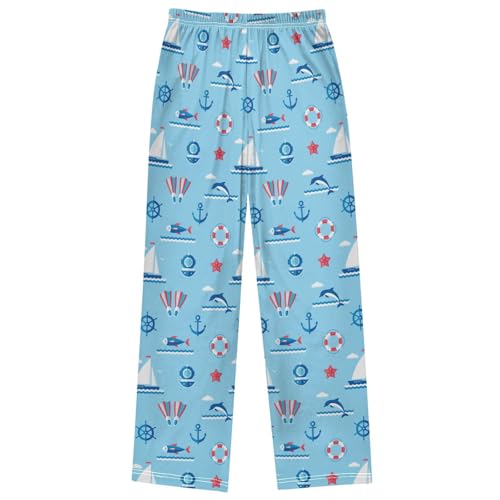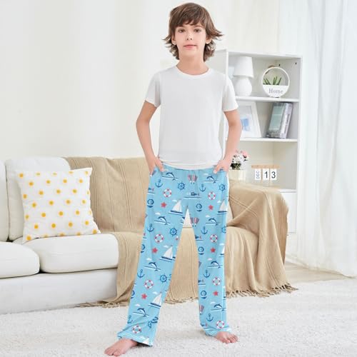Boy's Pj Pants Ocean Sailboat Dolphin Anchor Lounge Bottoms Elastic Kids Sweatpants Joggers with Pockets Size 6-14