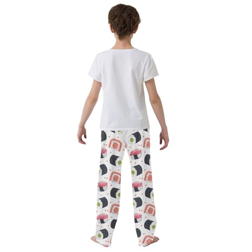 sizzling ! Boys' Pants Seafood Sushi White Long Bottoms Jogger Pants Elastic Waist Trousers with Pockets S-XL