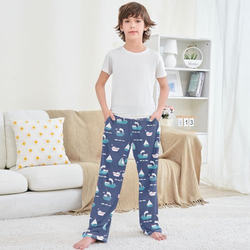 More information about Boy's Pj Pants Cute Little Boat Ornament Lounge Bottoms Elastic Kids Sweatpants Joggers with Pockets Size 6-14