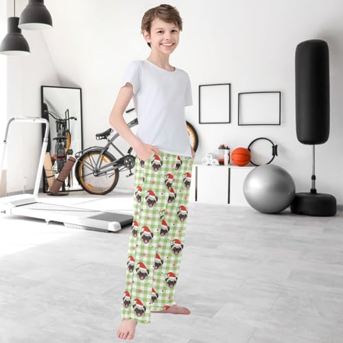 Boy's Pj Pants Hand Drawn Dog Christmas Hat Lounge Bottoms Elastic Kids Sweatpants Joggers with Pockets Size 6-14