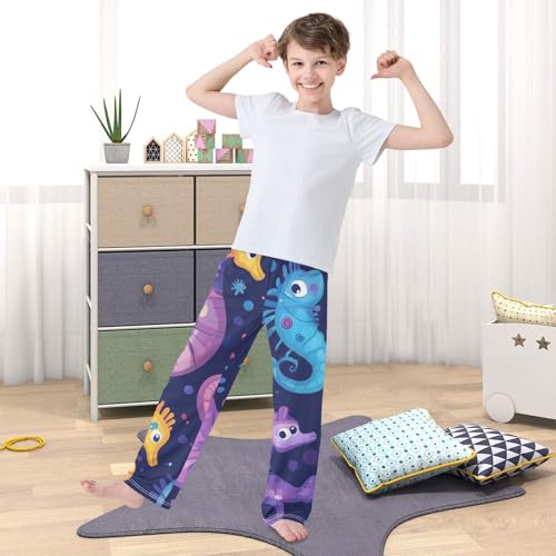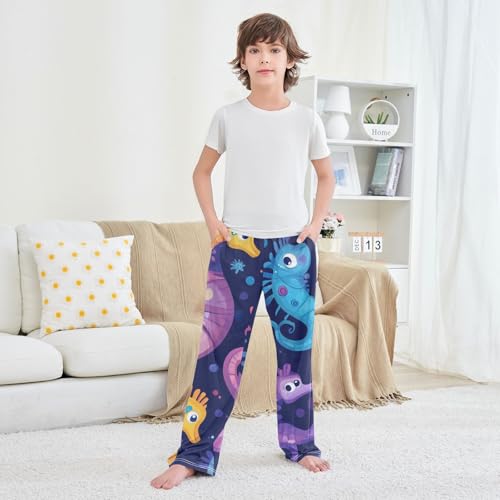 More information about ZZXXB Colorful Seahorse Boys Long Pants plush Trousers Elastic Waist Kids Lounge Bottoms with Pockets S-XL