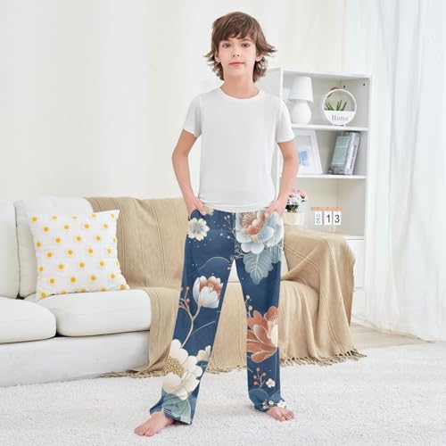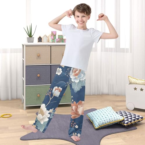 More information about ZZXXB Peony Flowers Print Boys Long Pants plush Trousers Elastic Waist Kids Lounge Bottoms with Pockets S-XL