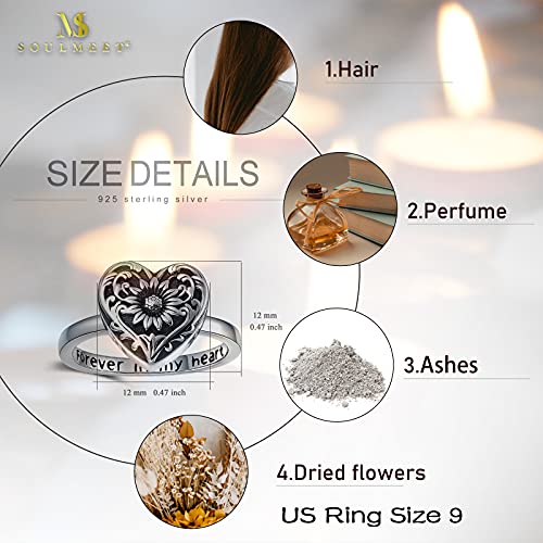 SOULMEET Sunflower Locket Urn Ring That Holds Loved Ones Ashes Sterling Silver Personalized Locket Band Keepsake Memorial Jewelry Cremation Rings for women