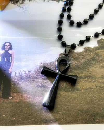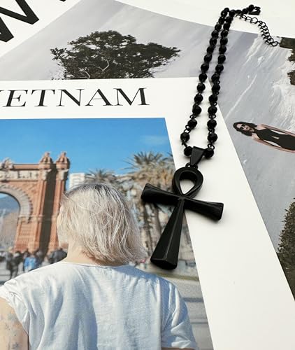 More information about Gothic Bead Coptic Ankh Cross Necklace, Stainless Steel Ankh Cross Pendant, Black Gothic Layered Choker Necklace for Women.