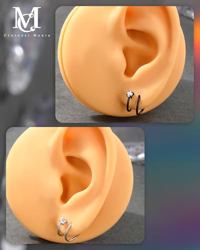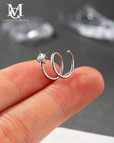 CM Crareesi Mania 3PCS Double Nose Ring Hoop for Single Piercing Pack, 316L Stainless Steel Spiral Twist Nose Hoop, 18G Nose Piercing Hoop for Women Clear CZ Twist Nose Ring