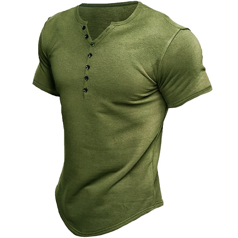 More information about Men's Button T Shirt Henley Shirt Short Sleeve Standing Collar Spring & Summer Plain Sports Punk & Gothic Sports Leisure Sports Fitness White Blue Brown Top Tee for Men