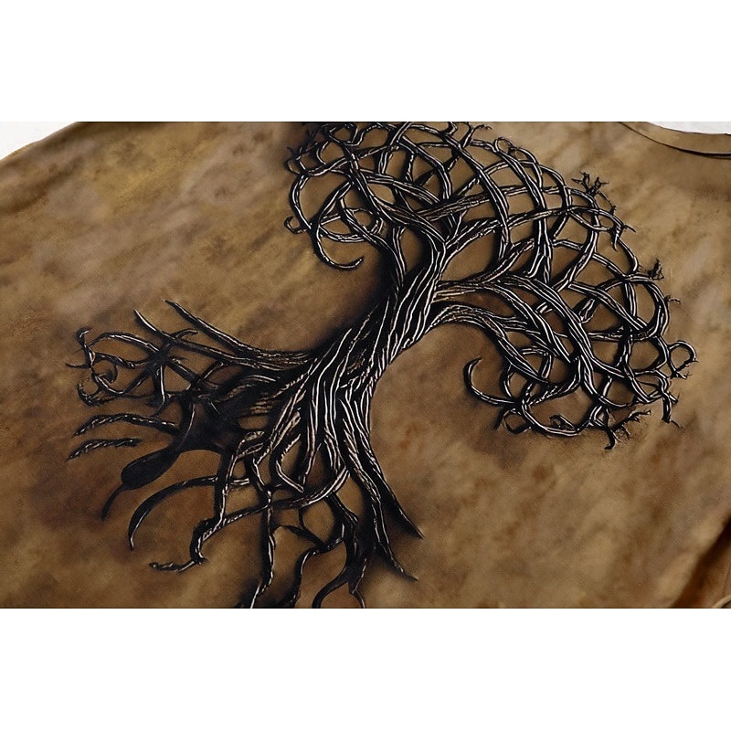 More information about Men's Tee Short Sleeve Shirt Tee Top Short Sleeve Crew Neck Summer Fall Graphic Tree Of Life Yggdrasil Fashion Designer Retro Vintage Print Vacation Street Going out Dark Brown Black Brown Top Tee