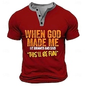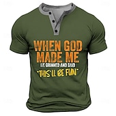 sizzling ! Men's Funny Henley Neck T-Shirt: 'When God Made Me This'll Be Fun' Lifestyle Humor Graphic Print