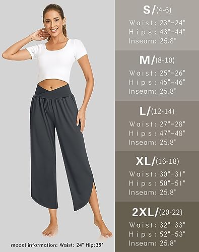 sizzling ! TARSE Wide Leg Pants for Women Cross High Waisted Yoga Pants Casual Lounge Joggers Loose fit Pajama Bottoms with Pockets