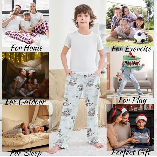 visesunny Boys' Pants Cute Gray Pirate Raccoon Light Green Jogger Pants Elastic Waist Long Bottoms Trousers with Pockets