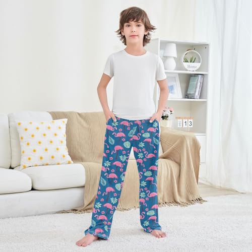 Flamingo Hibiscus Flower Boys Long Pants gentle Trousers Elastic Waist Kids Lounge Bottoms with Pockets S-XL