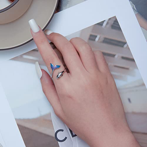 • The lively and smart little dolphin leaped out of the water, revealing its lovely blue purple tail. This sweet dolphin ring design is novel and fashionable, fresh and lovely.