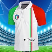 Highlights [Fabric] : Crafted from breathable and lightweight polyester, this men's polo shirt ensures comfort and ease of movement, making it an ideal choice for warm weather during spring and summer. [Fit] : Designed with a latest fit, this polo shirt offers just the right amount of micro-elasticity to provide a snug yet comfortable feel, perfect for enhancing a sporty or casual look. [Design Highlights] : Featuring the striking colors of the Italian flag, this shirt combines a classic polo collared neckline with a exclusive color-block pattern. The left sleeve is green, the right sleeve is red, and the main body is white. The shirt is adorned with an Italian emblem on the chest and vertical red and green stripes that run down the left side, accompanied by the word "ITALIA" and a heart symbol. These details are enhanced by a 3D print design, adding a touch of national pride and style. [Occasions] : This versatile Italian flag-themed polo shirt is perfect for a variety of occasions – from streetwear and casual outings to vacations and party outfits. Whether you're enjoying a day out or participating in a sporting event, this polo shirt makes an excellent choice. [Size Range] : Available in a wide range of sizes from S to XXXL, this polo shirt caters to a broad audience, ensuring the perfect fit for various body types.
