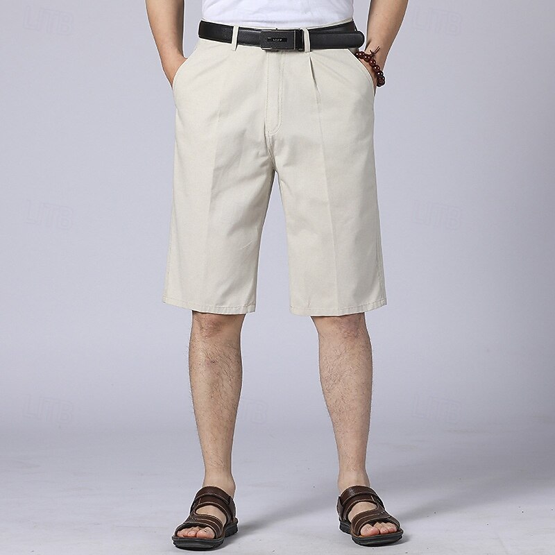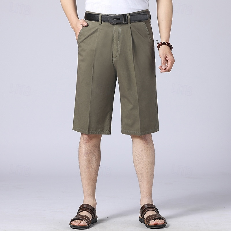 sizzling ! Men's Shorts Chino Shorts Dress Shorts Bermuda shorts Work Shorts Pleated Straight Leg Plain Breathable No-Iron Knee Length Formal Outdoor Casual Fashion Business Black Green Micro-elastic