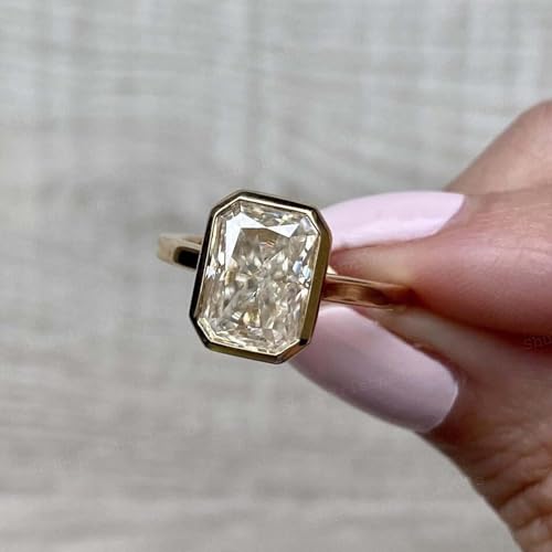 Ring size: AllMaterial: Gemstone, MetalMetal type: Sterling SilverGem type: MoissanitePRODUCT DETAILS :- Main Stone: Moissanite (Lab Created) Stone Color: Colorless Stone Shape: Emerlad Stone Size: 8X6 MMStunning Emerald Cut Moissanite: Featuring a brilliant emerald cut moissanite stone, this bridal wedding engagement ring sparkles like a diamond, offering timeless elegance and unmatched beauty.Premium 14K Yellow Gold: Crafted with high-quality 14K yellow gold, this solitaire ring boasts both durability and luxury, making it a perfect choice for your special day.Simulated Diamond Brilliance: The moissanite gemstone offers the same brilliance and fire as a diamond, providing a stunning, eco-friendly alternative with a fraction of the cost.Bezel Setting for new-age Elegance: The sleek bezel setting ensures the moissanite is securely held in place while providing a minimalist and contemporary look.Perfect Gift for Any Occasion: An ideal Mother’s Day gift or engagement ring, this exquisite piece of jewelry makes a thoughtful and memorable present for someone you love. Perfect for everyday use. premium materials and excellent craftsmanship ensure long-lasting durability.