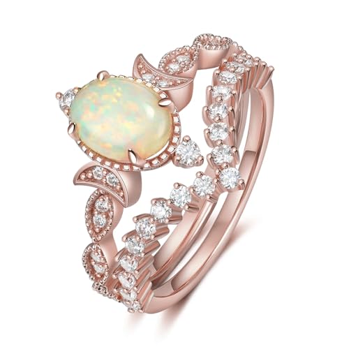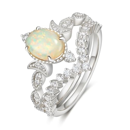 Opal Wedding Ring Sets for Women Center 1 CT Oval Opal Engagement Ring Set with Moissanite 10K 14K 18K Gold Ring Platinum Plated Star Wedding Sets for Her